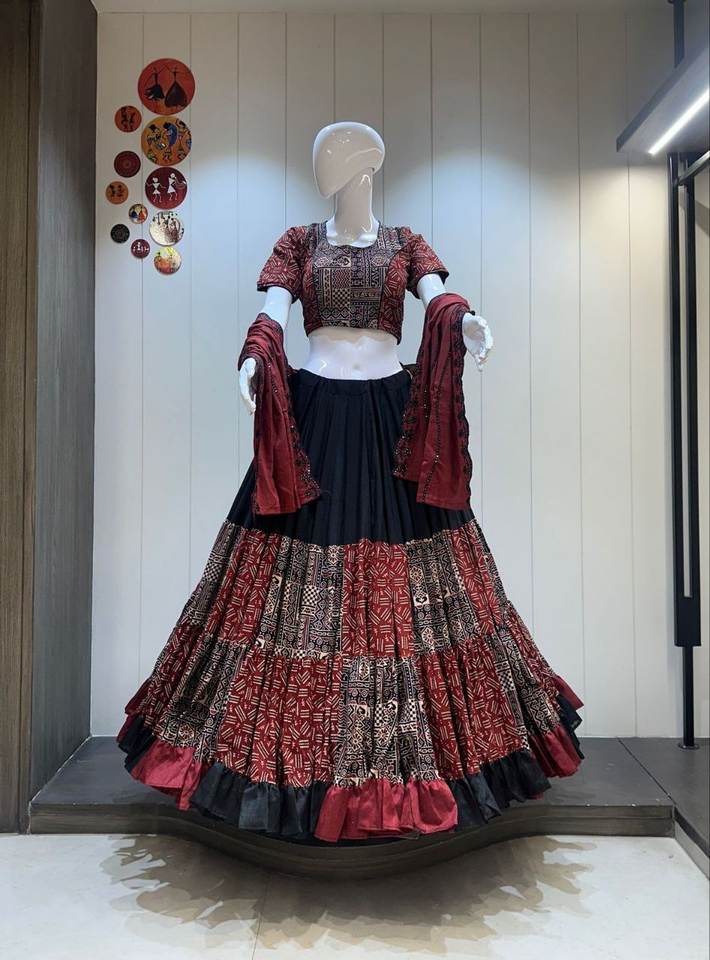 งาน lehenga:Chaniya choli พิมพ์ลายเปลวไฟ12 MTR