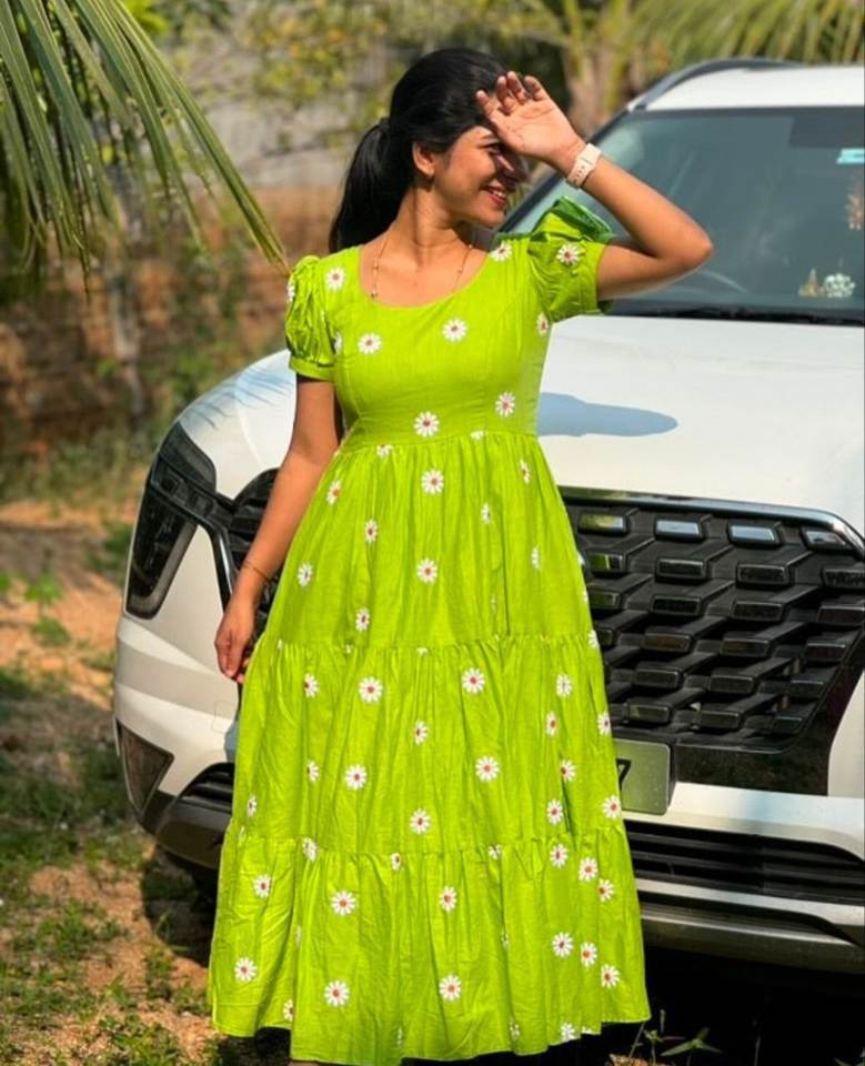 ชุดเดรสผ้าคอตตอนพิมพ์ลาย Georgette สำหรับผู้หญิงชุดเดรสชิ้นเดียวแขนแฟนซีผ้าไหมสไตล์อินเดียสำหรับงานแต่งงานสำหรับผู้ใหญ่