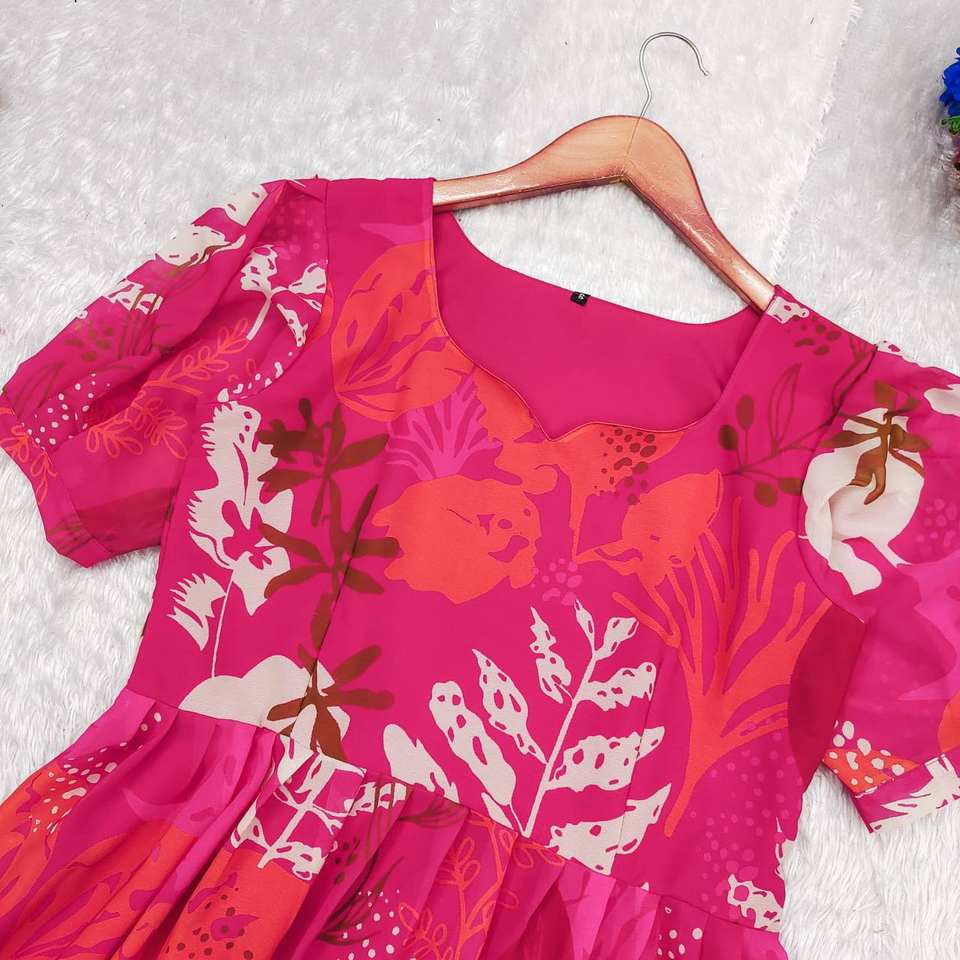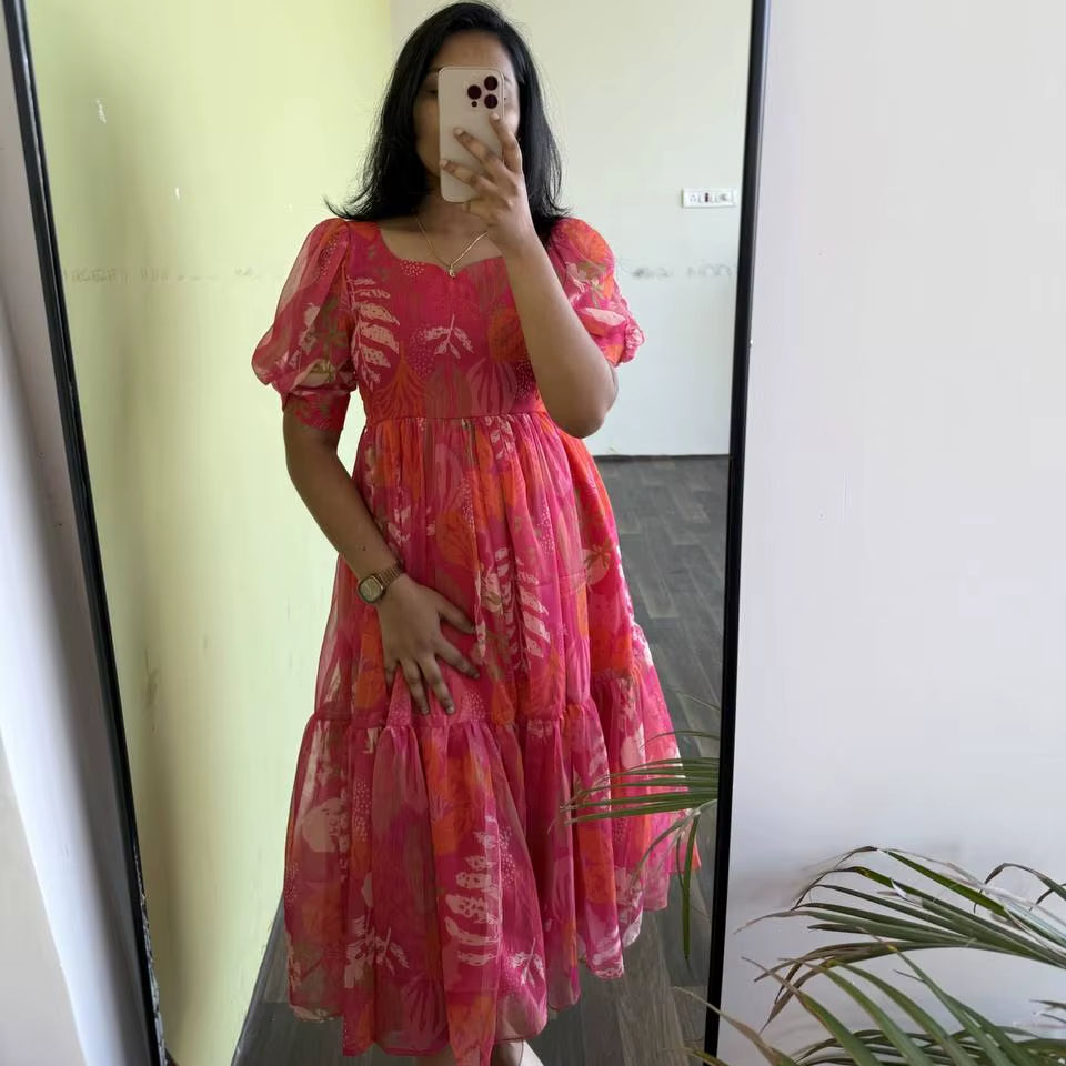 ชุดเดรสผ้าคอตตอนพิมพ์ลาย Georgette สำหรับผู้หญิงชุดเดรสชิ้นเดียวแขนแฟนซีผ้าไหมสไตล์อินเดียสำหรับงานแต่งงานสำหรับผู้ใหญ่