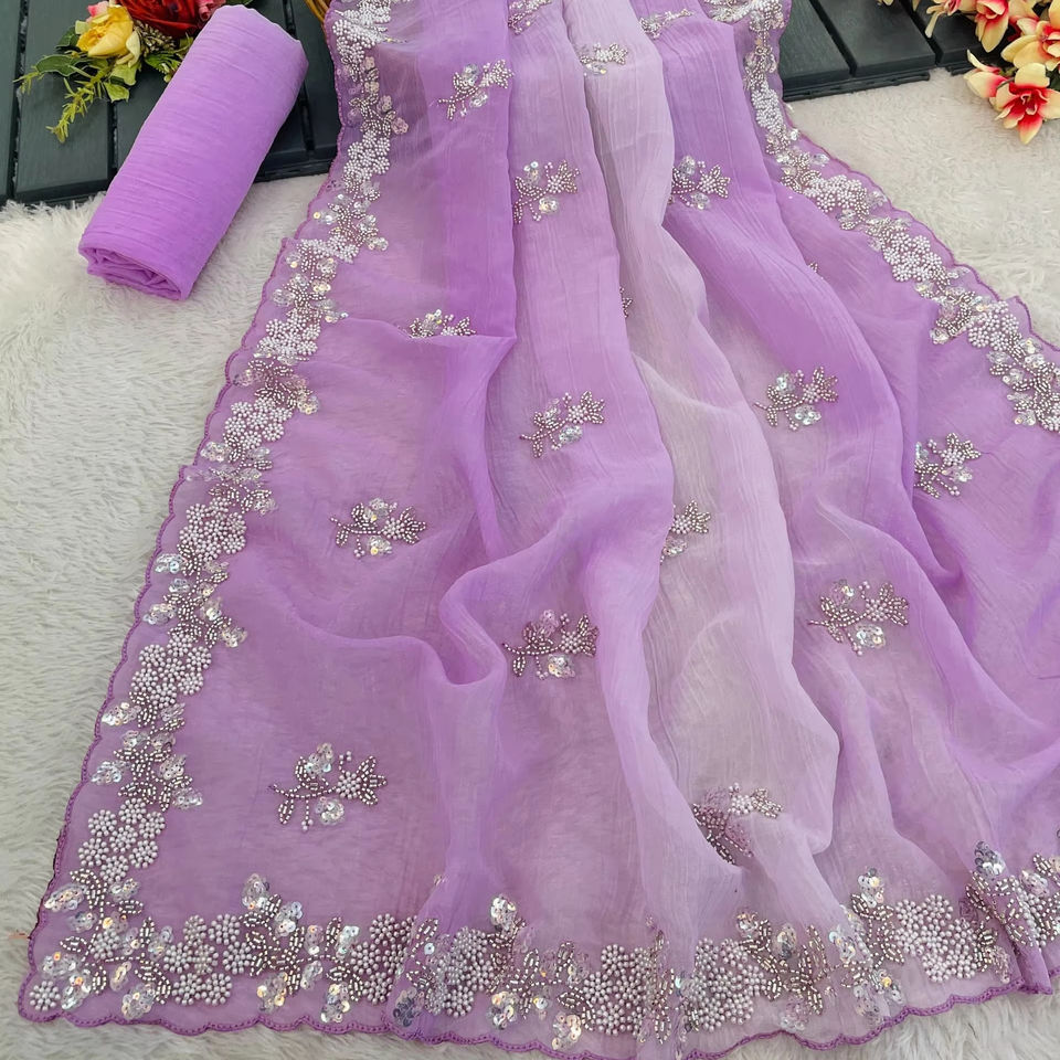 ผ้าส่าหรีผ้าไหมผสมดีไซน์เนอร์ตัดได้อย่างสวยงามขอบงานปากีสถานสำหรับงานแต่งงานในโอกาสพิเศษงานปาร์ตี้ผ้าไหม