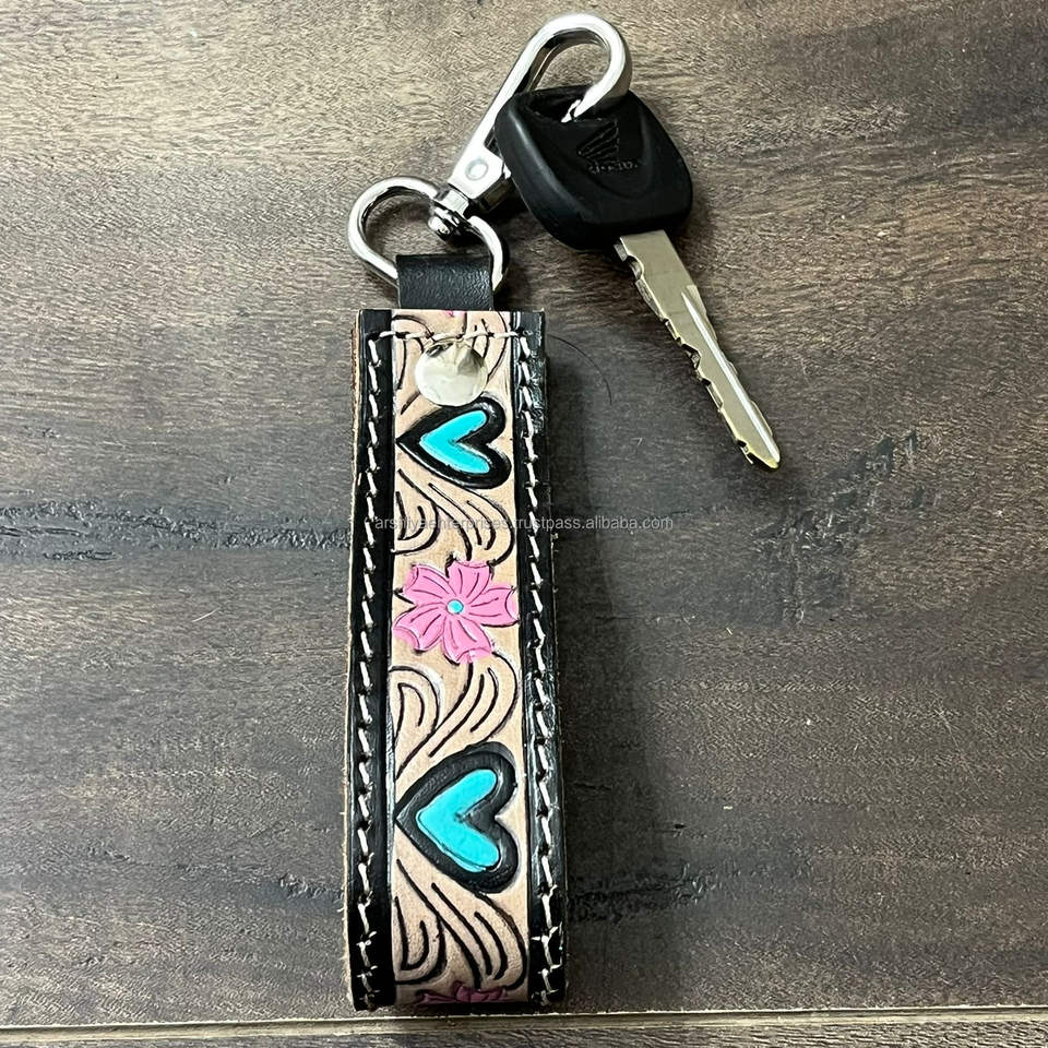 พวงกุญแจหนังแท้วินเทจสำหรับผู้หญิงพวงกุญแจโลโก้ออกแบบได้ตามต้องการพวงกุญแจสไตล์ตะวันตก