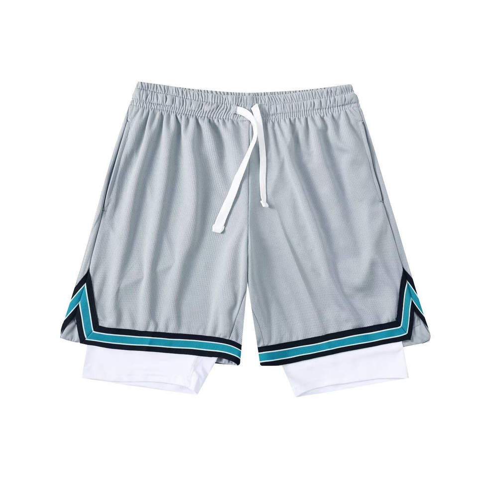 กางเกงขาสั้นบาสเก็ตบอลตาข่ายโพลีเอสเตอร์สำหรับผู้ชายกางเกงขาสั้นระบายอากาศได้ดีพิมพ์ลายได้สองชั้น