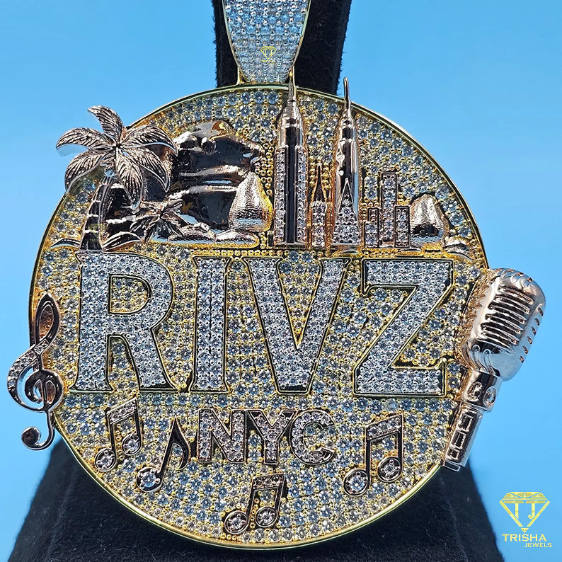 จี้ชื่อทรงกลมแบบสั่งทำพิเศษ ประดับเพชร VVS เพชรเลี้ยงในห้องปฏิบัติการ เงินแท้ 925 สไตล์ฮิปฮอป เครื่องประดับดนตรี