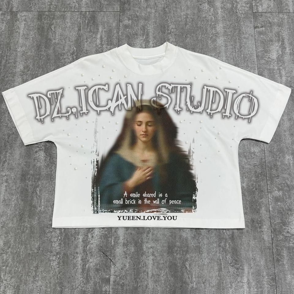 เสื้อยืดดีไซน์เนอร์แขนสั้น ผ้าหนา คอกลม ทรงบ็อกซี่ พิมพ์ลายกราฟิก เสื้อยืดโอเวอร์ไซส์ สำหรับผู้ชาย