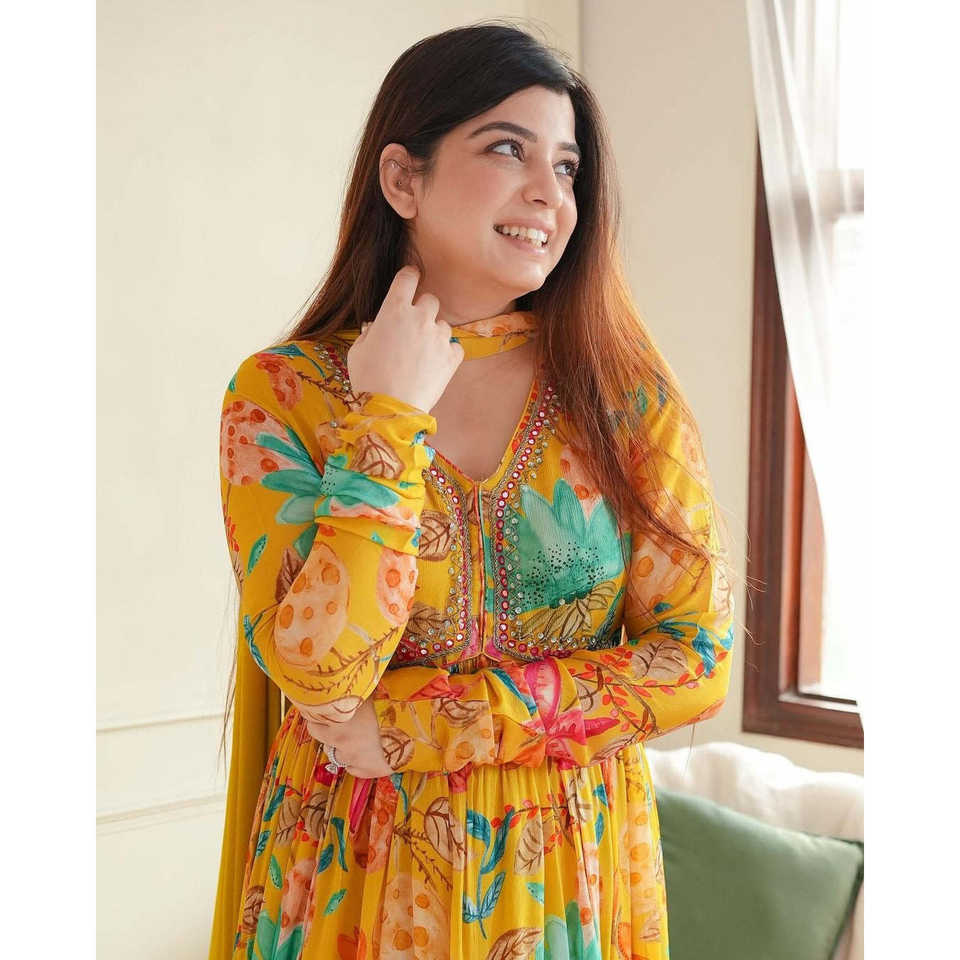 ชุดราตรีสำหรับงานปาร์ตี้ชุดราตรีพิมพ์ลายดิจิทัลดีไซน์เนอร์พร้อม dupatta