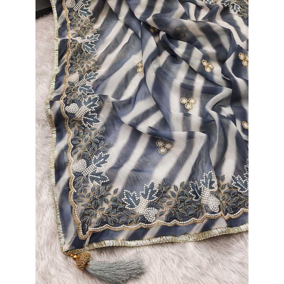 ผ้าส่าหรีพิมพ์ลายดิจิทัลแบบดีไซเนอร์ พร้อมงานปัก และเครื่องประดับชนเผ่าอื่นๆ