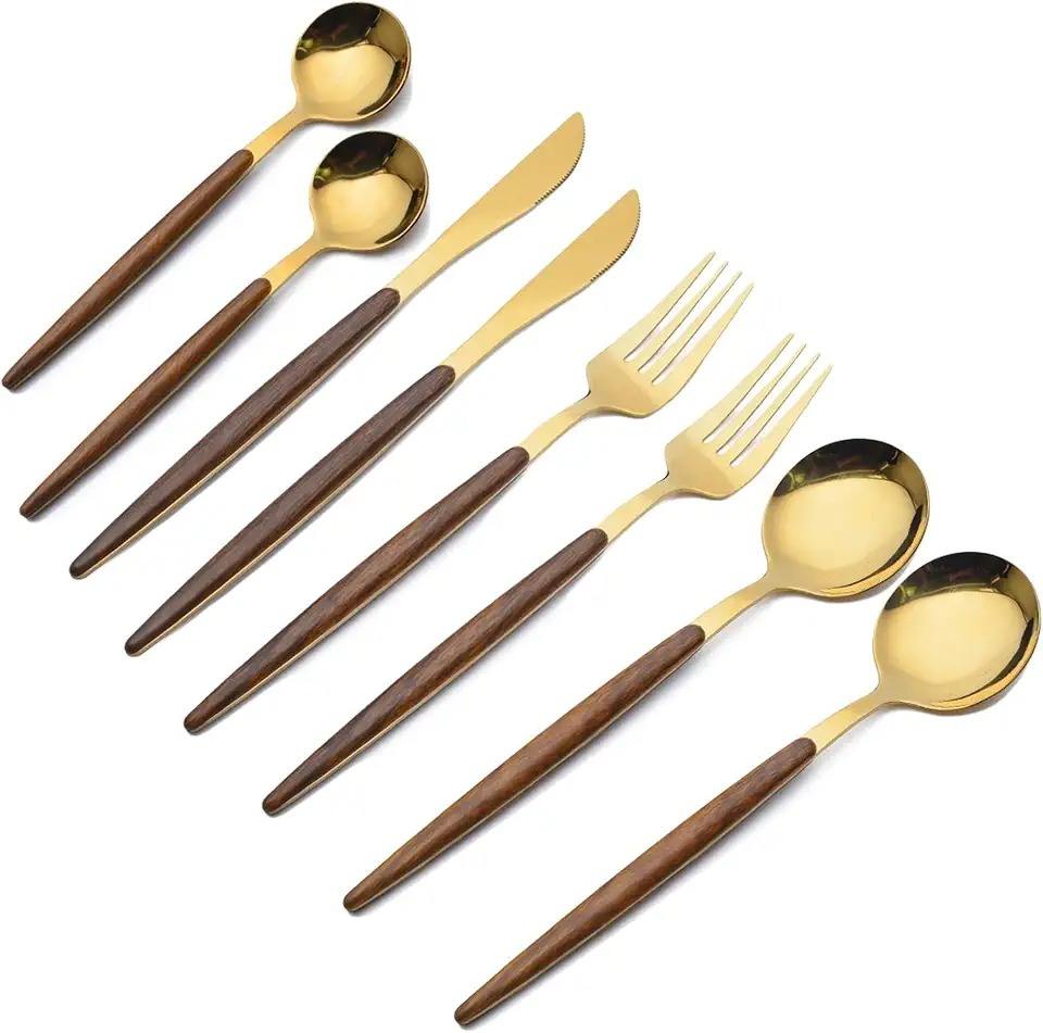 ชุดช้อนส้อมมีดโลหะดีไซน์เนอร์ ด้ามไม้ สแตนเลส ชุดอุปกรณ์รับประทานอาหาร ช้อน ส้อม มีด คุณภาพพรีเมียม สำหรับโต๊ะอาหาร