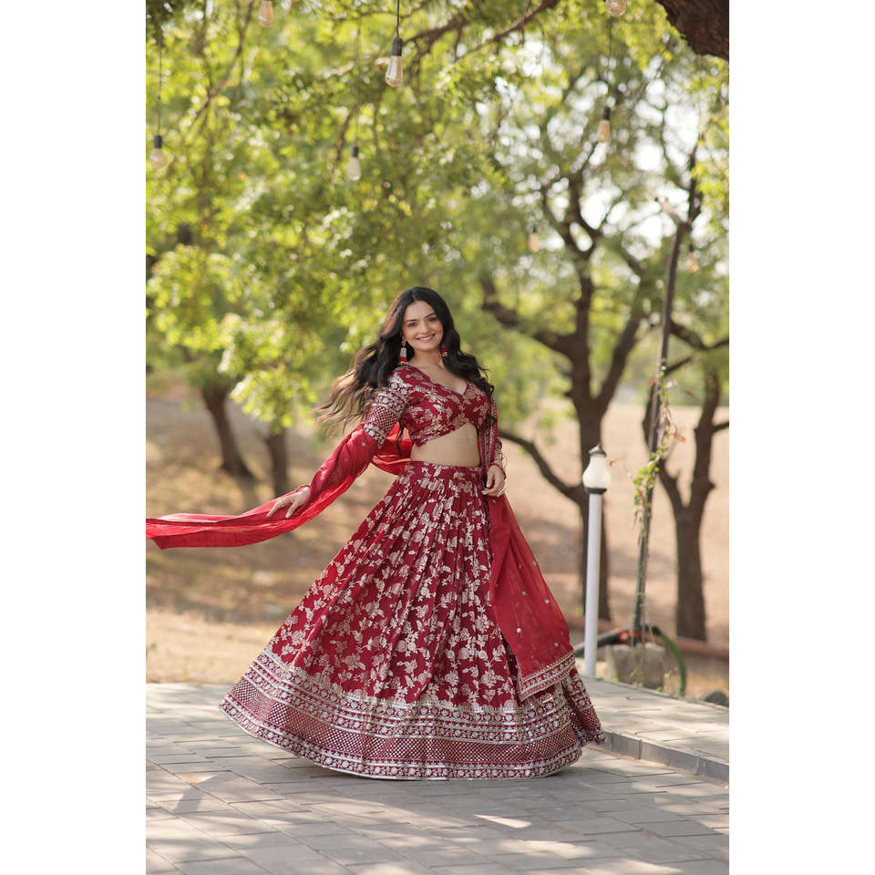ชุด lehenga choli ผ้าแจ็คการ์ดแท้ย้อมสี