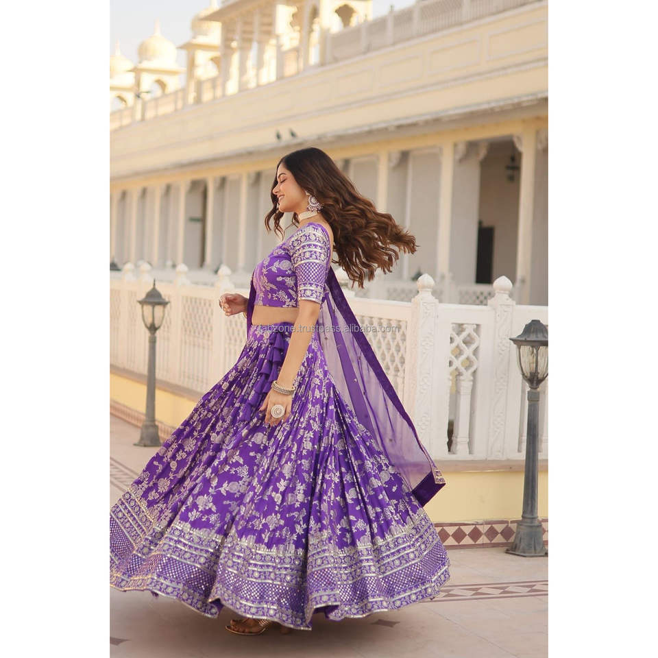 ชุด lehenga choli ผ้าแจ็คการ์ดแท้ย้อมสี