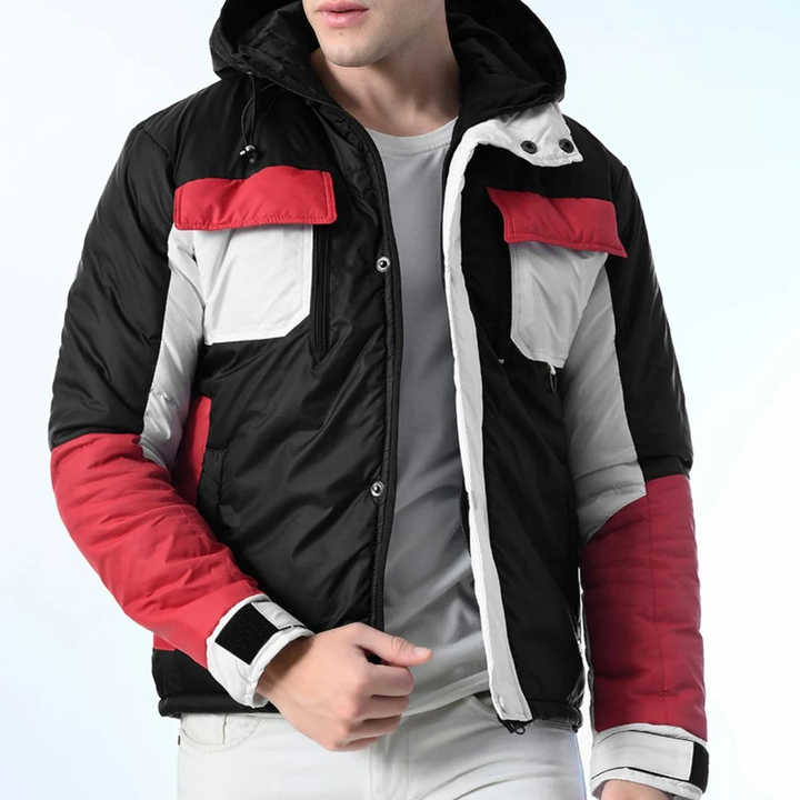 Designer Eco-Friendly Windproof Men's Puffer Jacket with Front Logo Customizable Hooded Winter Jacket