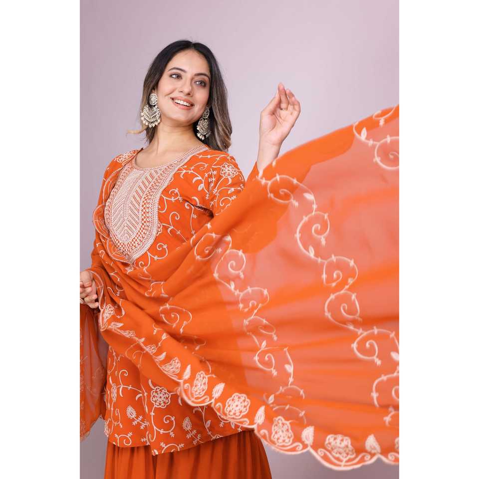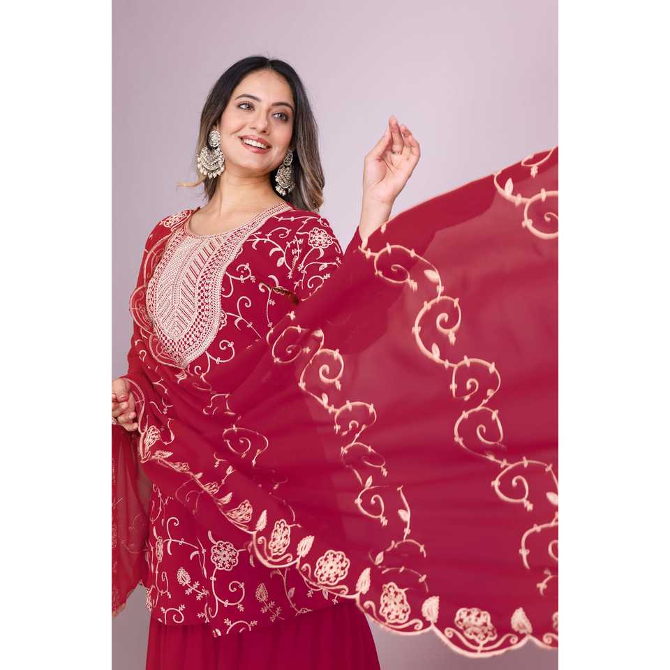 ชุดสูทผ้าจอร์เจียแบบปักพร้อมชุดมุสลิมแบบดั้งเดิมและเครื่องประดับจาก Dupatta