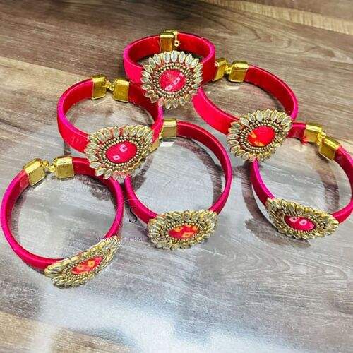 กำไลข้อมือผ้าไหมไข่มุกสีแดงปักลายดีไซน์เนอร์สำหรับฮาลดีเมเนดี้และงานแต่งและคืนกำไลข้อมือ