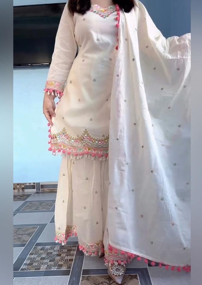 ซาลวาร์ Kameez ผ้าคอตตอนแท้ปักลายดีไซน์เนอร์ทำงานทรงหลวมสวมใส่สบายหรูหราเนื้อผ้าแห้งเร็ว