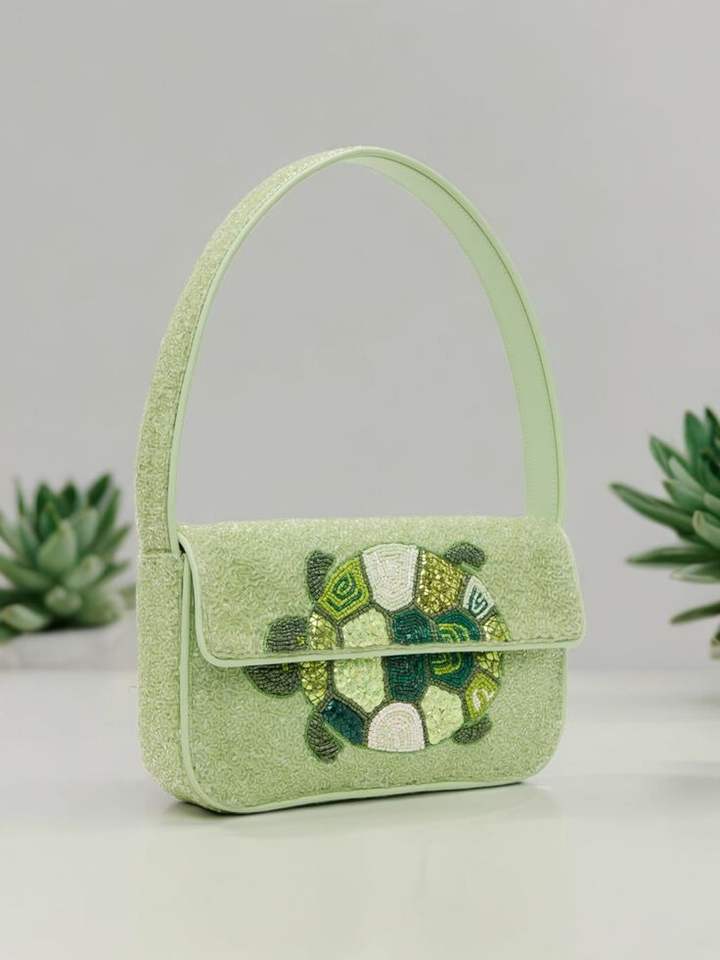 กระเป๋าถือและเข็มขัดแบบเบา ประดับด้วยลูกปัดปักมือ ดีไซน์เนอร์ทำเอง