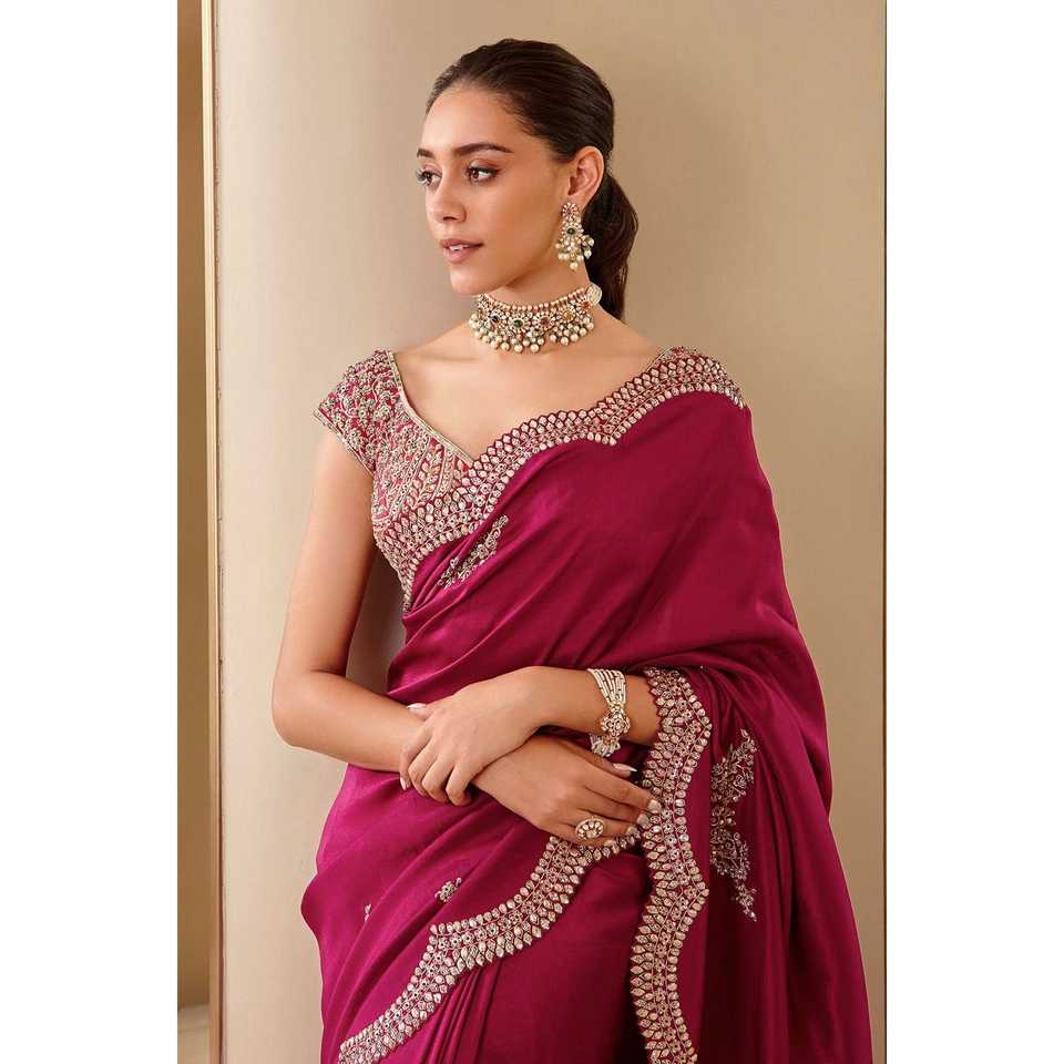 ผ้าส่าหรีปักเลื่อมงานดีไซน์เนอร์งานปาร์ตี้ใส่ในไลน์ชุดเดรสอาชีพ