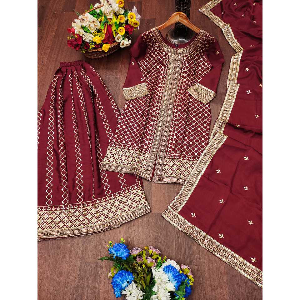 ชุดสูท Sharara ปักดีไซน์เนอร์พร้อมชุดปักตามลำดับสำหรับชุดงานพรอม
