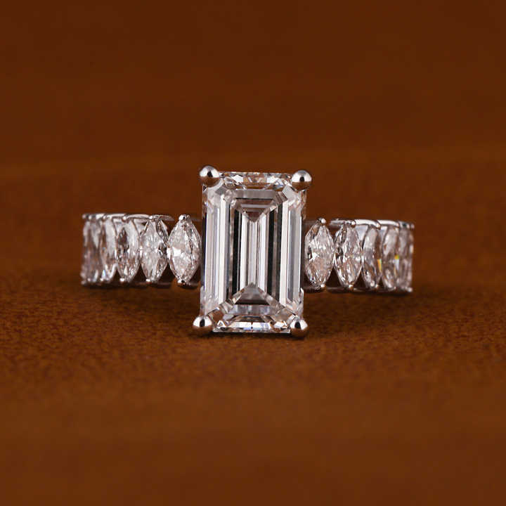 แหวนหมั้นเพชรทรงมรกตและมาร์คีส์ ดีไซน์เนอร์ ผลิตจากทองคำขาว 14k เพชร VVS แหวนเพชรวงกว้าง เครื่องประดับชั้นดี