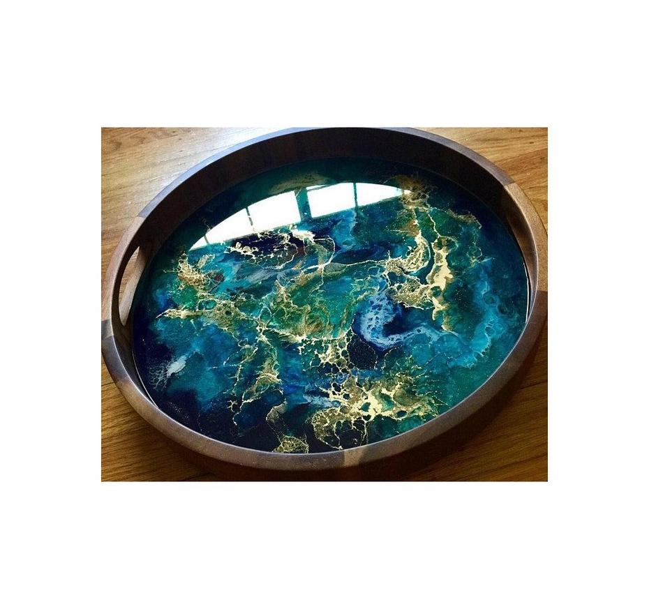 ถาดเสิร์ฟพร้อมสต็อกไม้อีพ็อกซี่ทำด้วยมือสำหรับขนมกาแฟชาไวน์