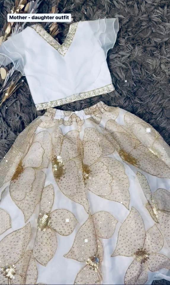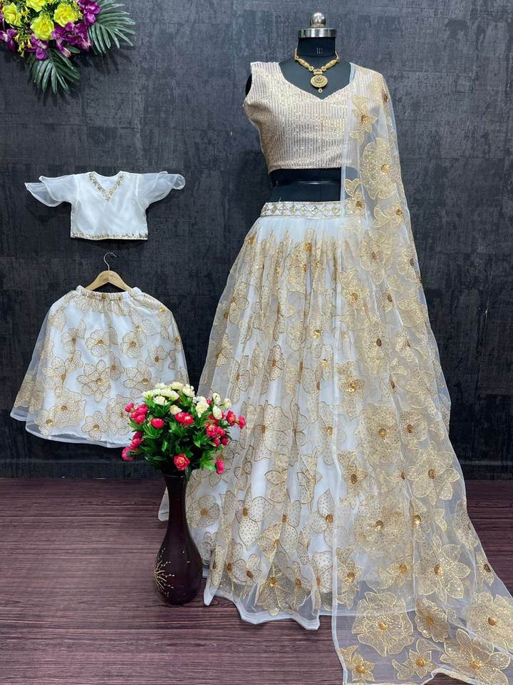 ชุดเลเฮนกาโชลีผ้าเน็ตเนื้อนุ่มแบบพรีเมียมสไตล์ดีไซเนอร์สำหรับแม่และลูกสาว ปักลายเลื่อม เหมาะสำหรับงานเทศกาลและงานปาร์ตี้