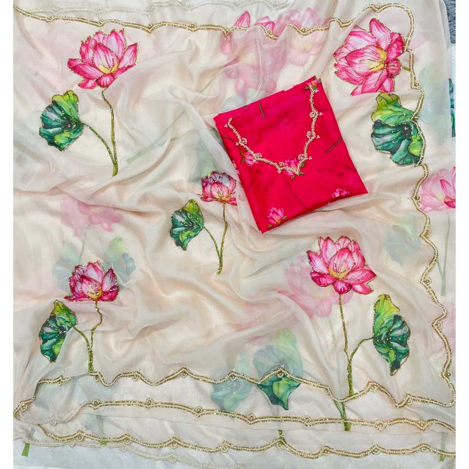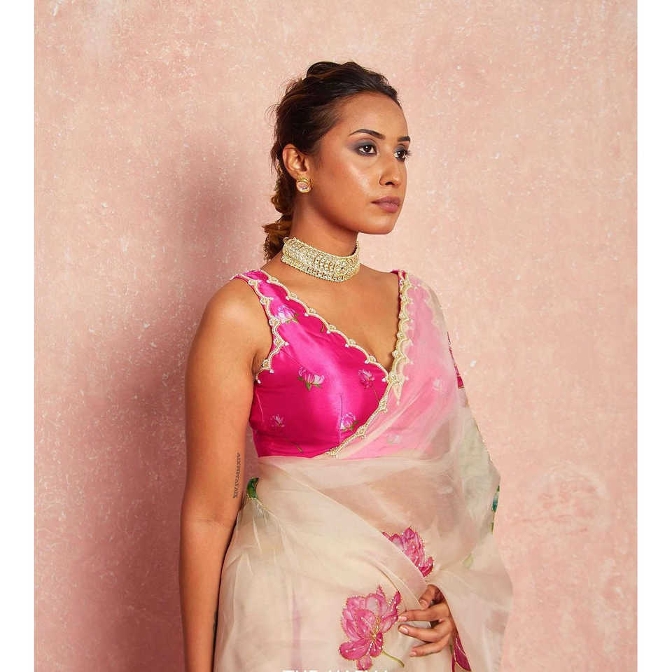 ชุดราตรีดีไซเนอร์ ผ้าซารีลายดอกไม้สวยงามสำหรับงานปาร์ตี้