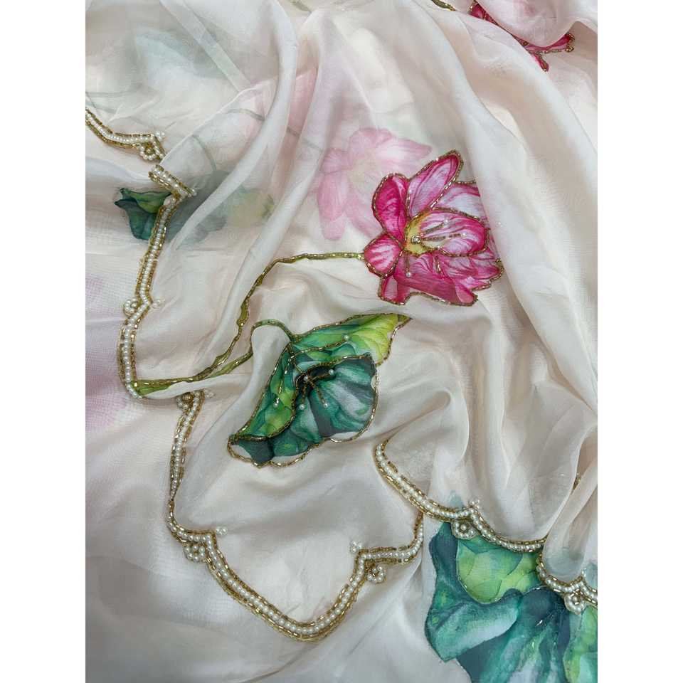 ชุดราตรีดีไซเนอร์ ผ้าซารีลายดอกไม้สวยงามสำหรับงานปาร์ตี้
