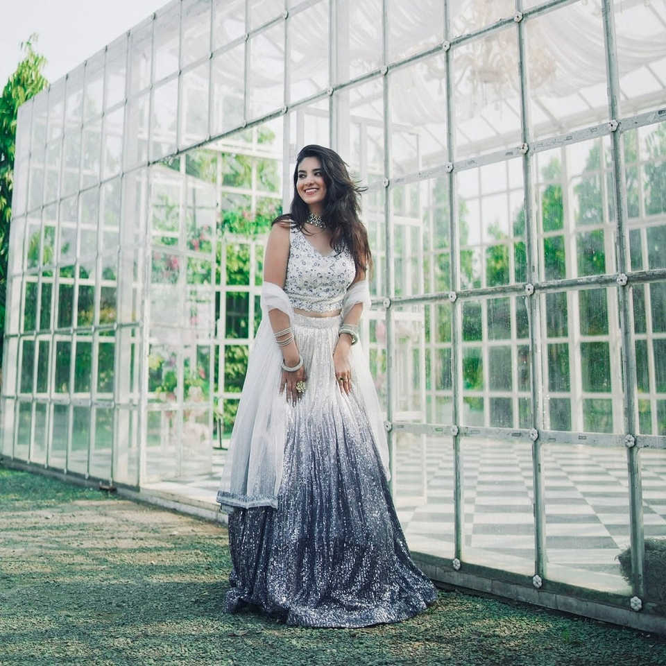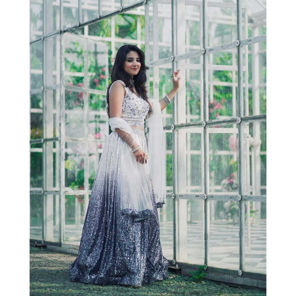 ชุดราตรีออกแบบโดย lehenga choli กับ dori และเลื่อมทำงานสำหรับงานปาร์ตี้