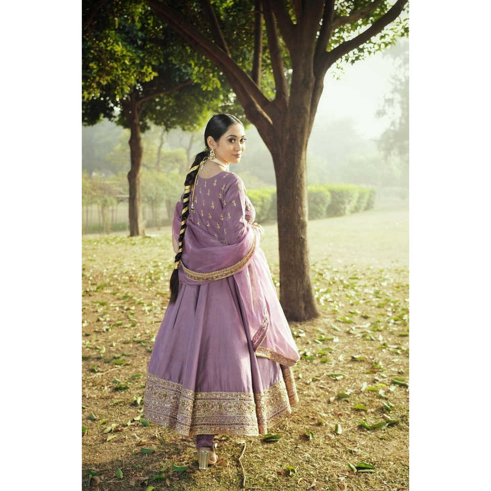 ชุดราตรีสีม่วงสวยงามจาก Sai Creation Designer พร้อมกางเกงและผ้าคลุมไหล่ ไซส์ M