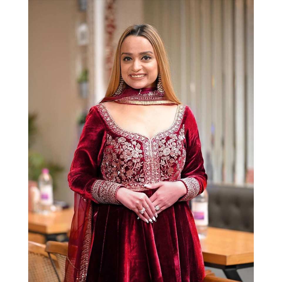 ชุดราตรีออกแบบมีสไตล์กับด้านล่างและ dupatta สำหรับงานปาร์ตี้