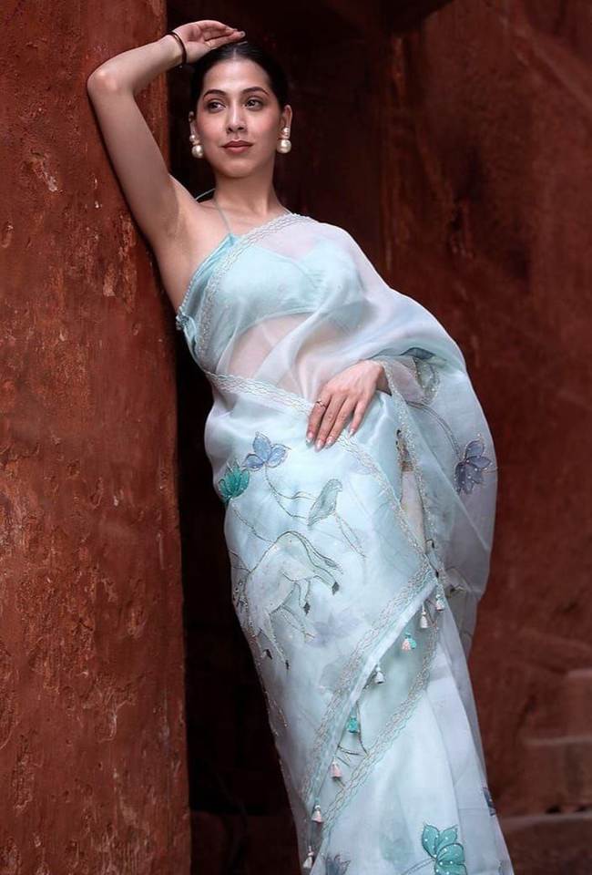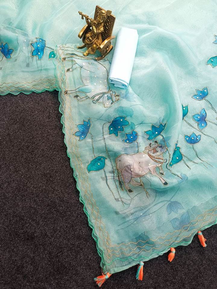 Work:JARI WITH BEAUTIFUL ZIGZAG LEHRIYA DIGITAL PRINT WITH RICH PALL