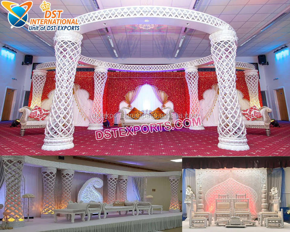 เสาคริสตัล FRP ดีไซน์เนอร์งานแต่งตกแต่งด้วยคริสตัลสีขาวหรูหรา FRP Mandap Mandap