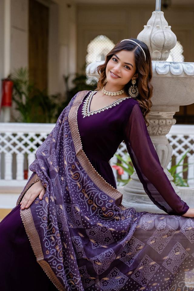 Product Name:Designer Fancy Faux Blooming With Beads Embroiery Gown And Dupatta