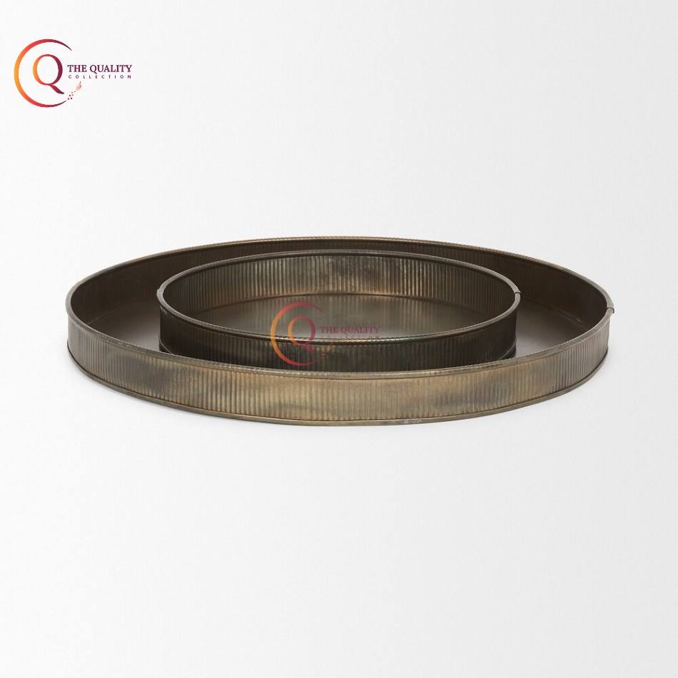 ถาดชุบสังกะสีเคลือบด้วยผงสีน้ำตาลอุปกรณ์รับประทานอาหารเคลือบเงาทำด้วยมือทำจากผงสีน้ำตาล