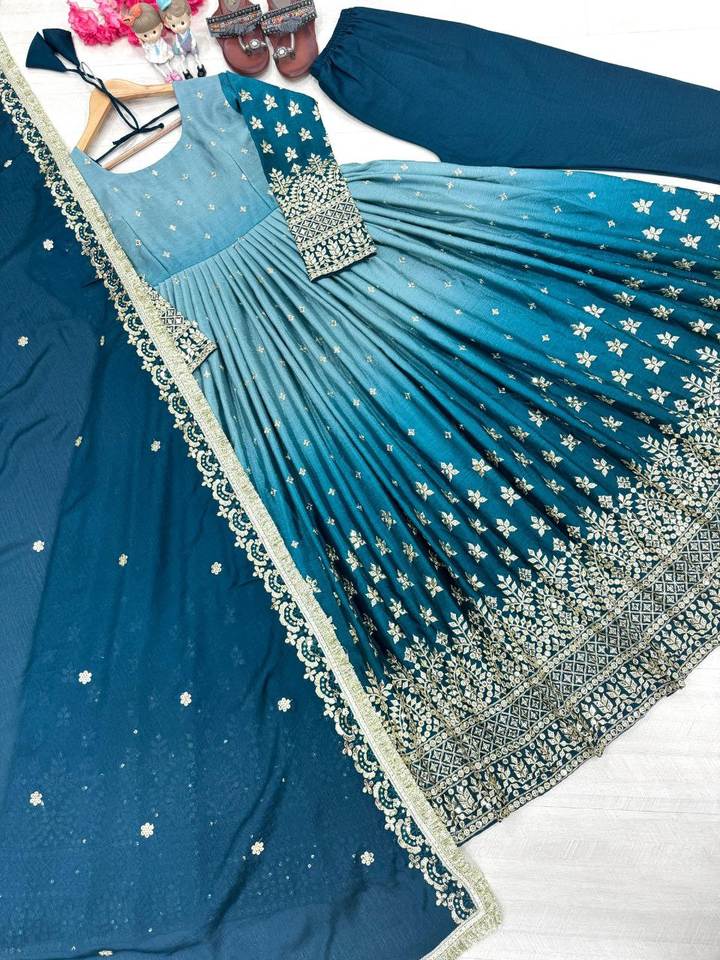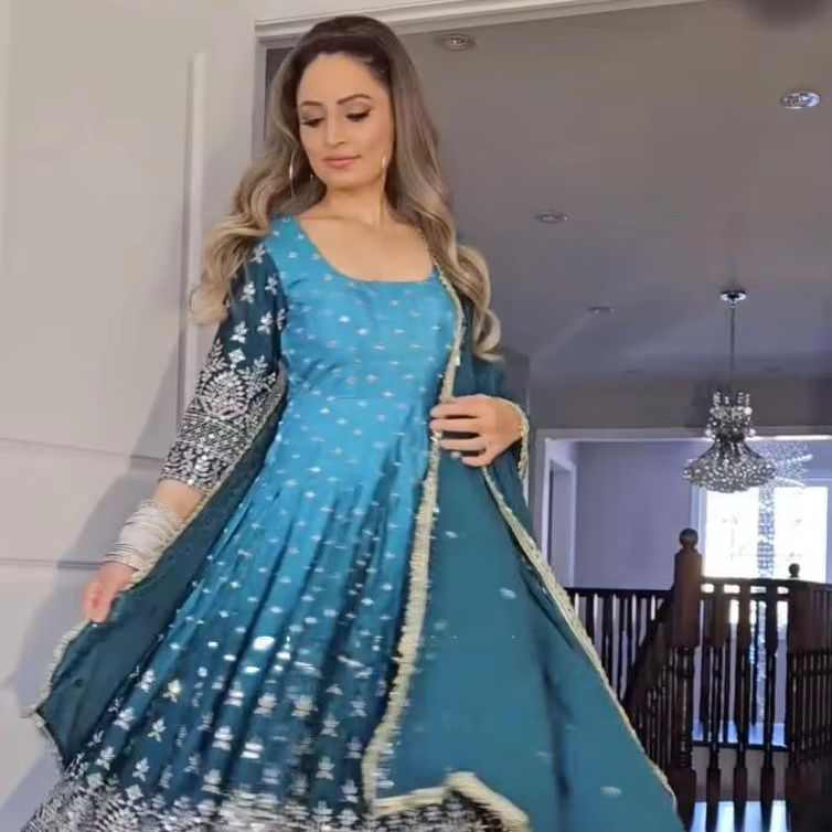 ชุดปักลายสองสีฟ้าท้องฟ้าแฟนซีสำหรับงานแต่งงานและงานปาร์ตี้ของปากีสถาน