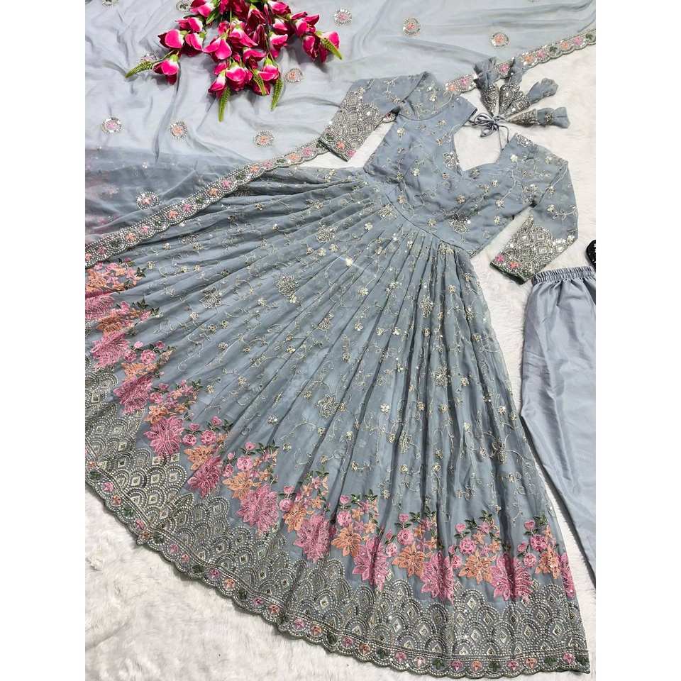 Designer Fancy Style New Anarkali Gown and Pant with Dupatta Evening Dresses