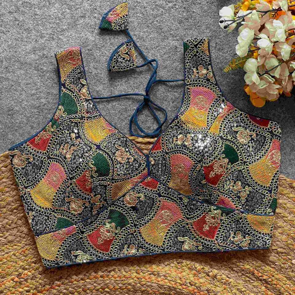 เสื้อเบลาส์ georgette สังเคราะห์แต่งด้วยตะขอทำมือแบบเปิดหลังสำหรับงานปาร์ตี้บอลลีวูดอินเดียปากีสถานชาวเอเชียใต้