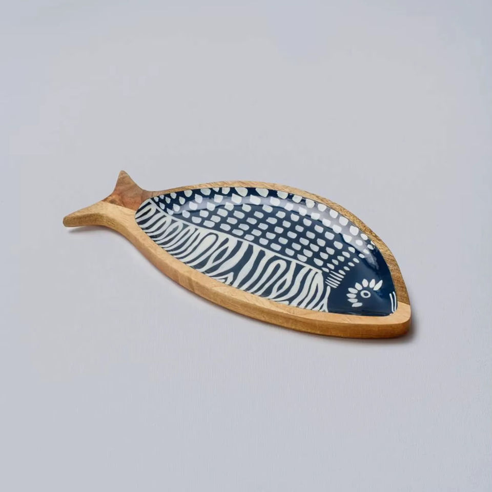 ถาดไม้รูปปลาดีไซน์เนอร์ถาดทำด้วยมือแบบพรีเมี่ยมสำหรับขนมที่เสิร์ฟชากาแฟผลไม้และโฮสต์แขกจากอินเดีย