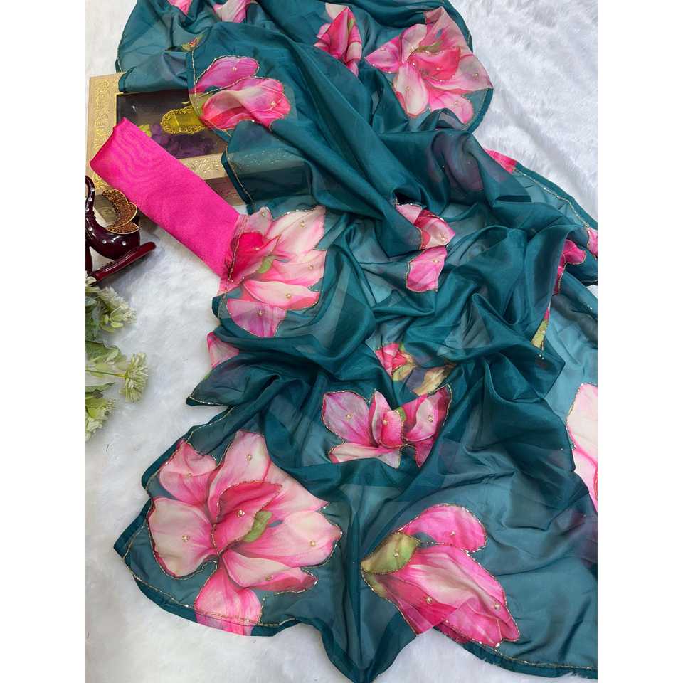 ชุดส่าหรีพิมพ์ลายดอกไม้ออกแบบสำหรับงานปาร์ตี้ชุดงานพรอมสุดหรู