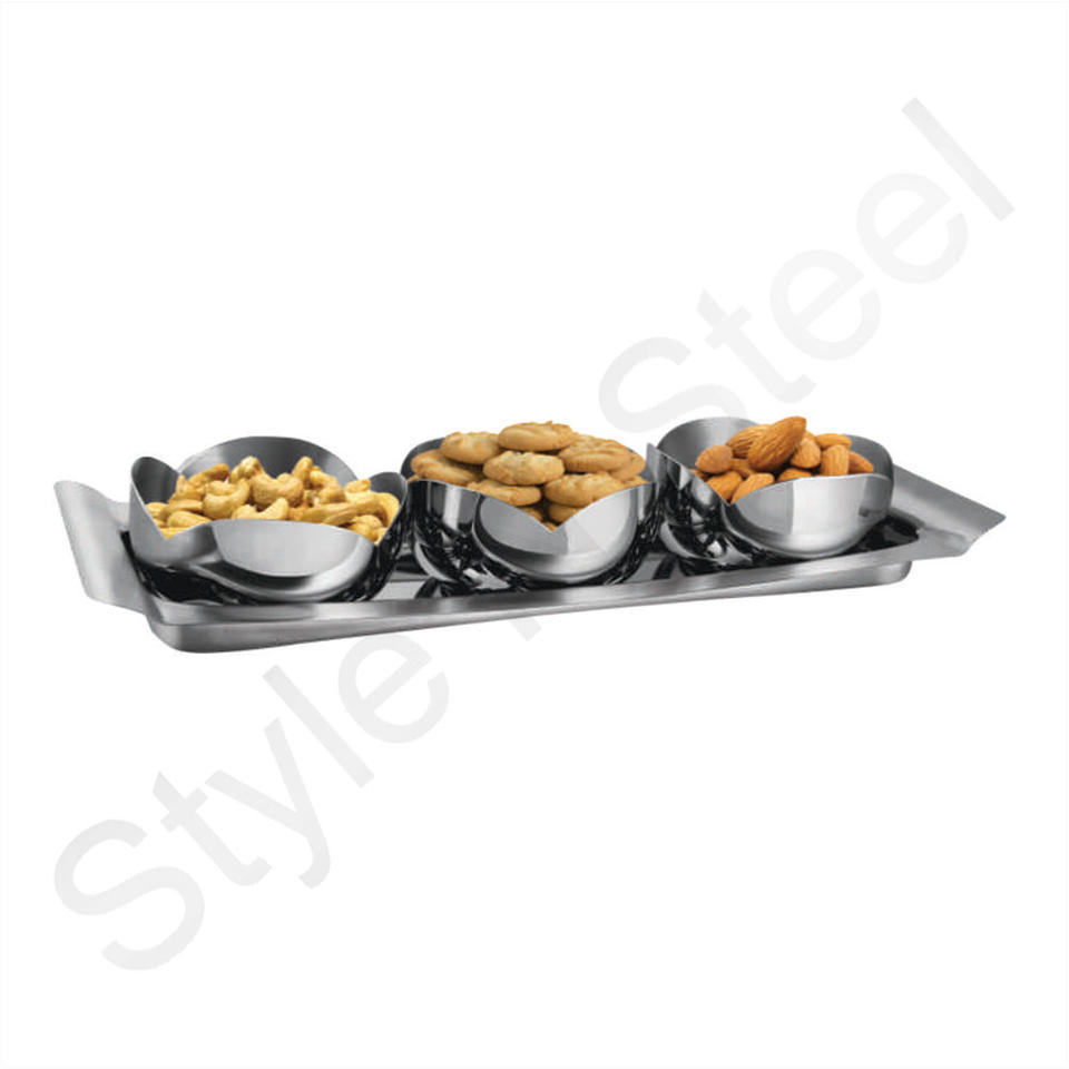 ออกแบบอาหารที่ให้บริการถาดสแตนเลสในราคาขายส่งที่ให้บริการชุด4ชิ้นที่ให้บริการถาดและชุดชาม