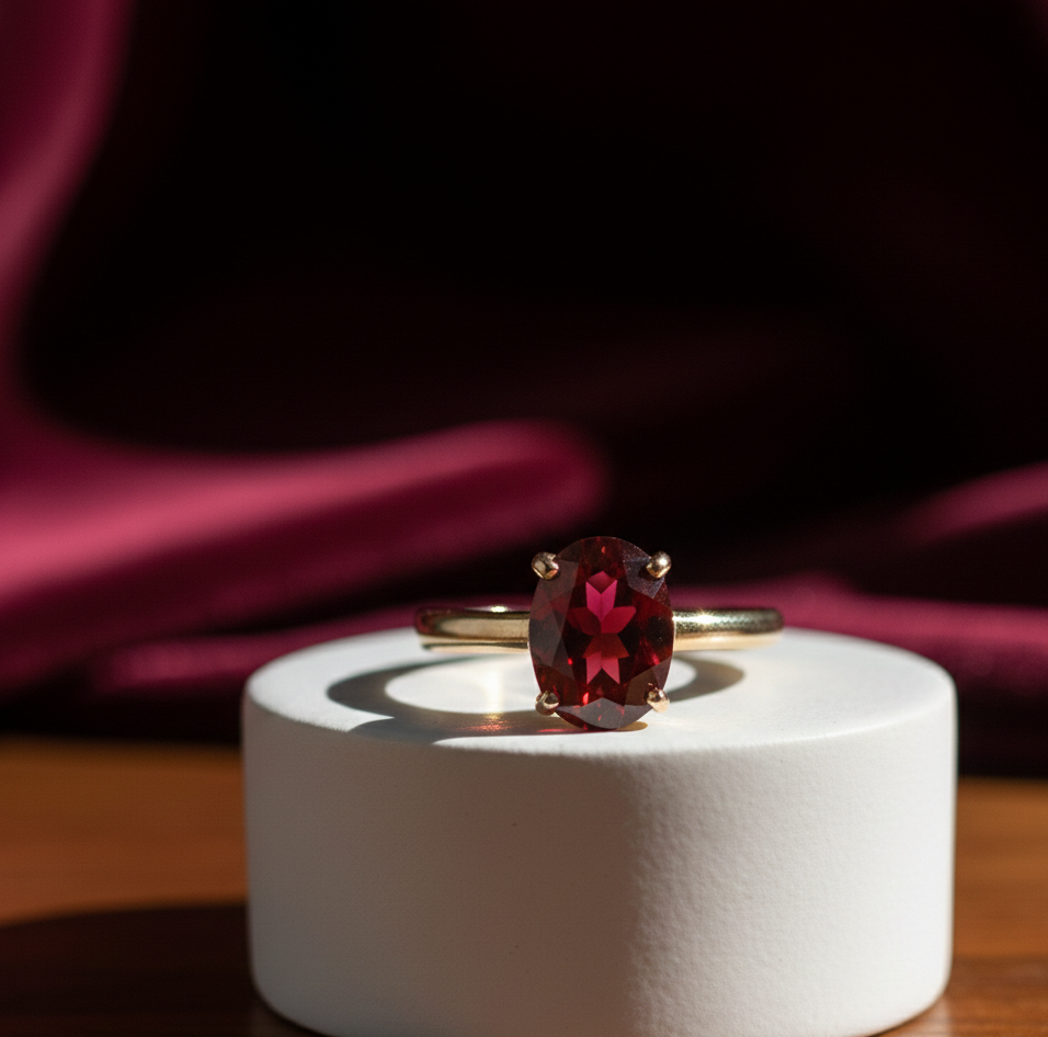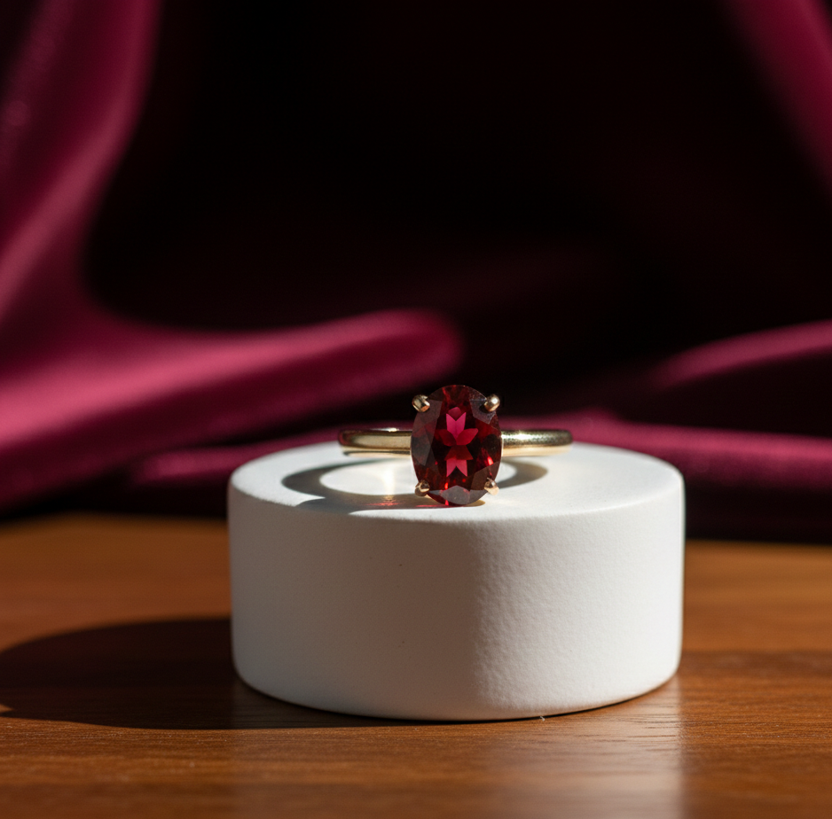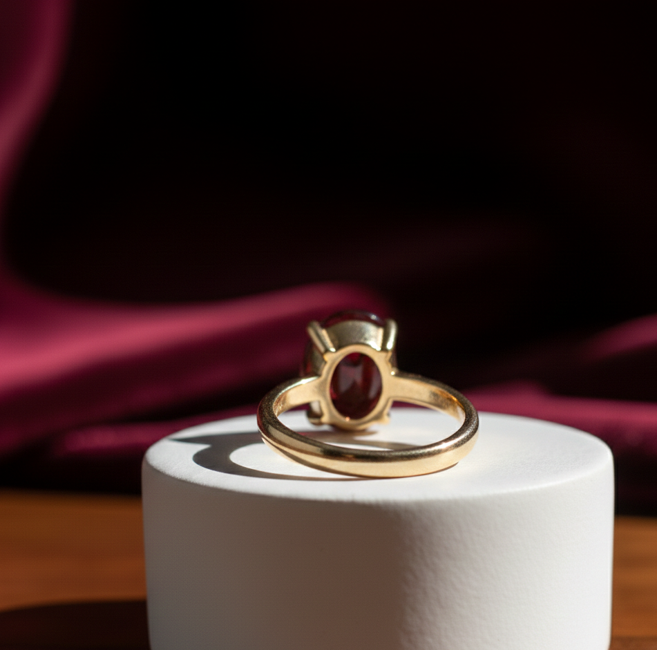 แหวนดีไซน์เก๋รูปไข่ประดับพลอยโกเมน ไซส์ US 6 เงินแท้ 925 ชุบทอง 18K เหมาะสำหรับงานแต่งงานและงานเลี้ยง ราคาขายส่ง