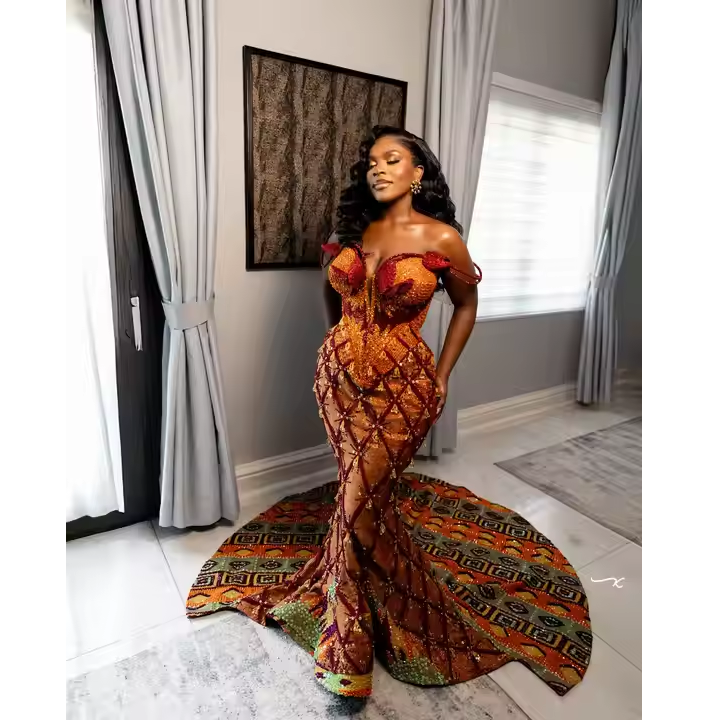 ชุดเดรสแขนสั้นทรงสลิมฟิต ดีไซน์เนอร์จอร์จ สำหรับผู้หญิง หรูหรา เป็นมิตรกับสิ่งแวดล้อม ระบายอากาศได้ดี น้ำหนักเบา สไตล์ดั้งเดิม ผสมผสานกลิ่นอายแอฟริกัน