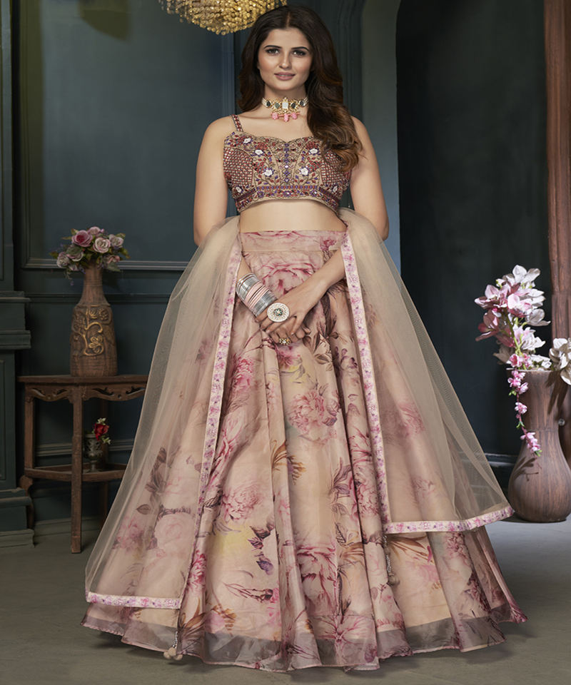 ผ้าจอร์เจียแบบมีผ้าเย็บปักลาย Georgette งาน lehenga choli เสื้อผ้าสำหรับงานแต่งงานราคาขายส่งเสื้อผ้าพื้นเมือง