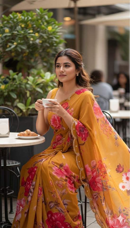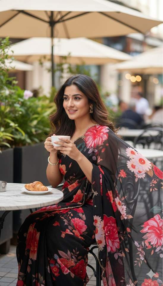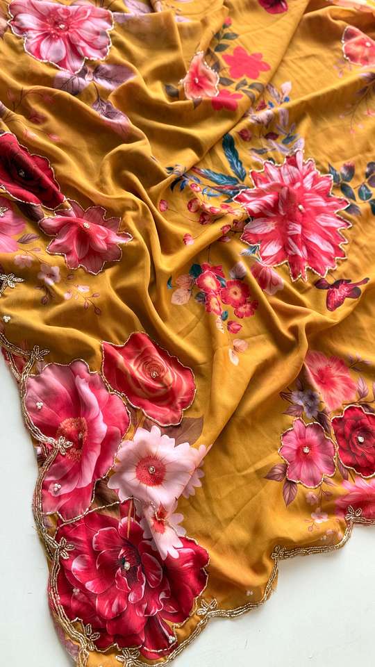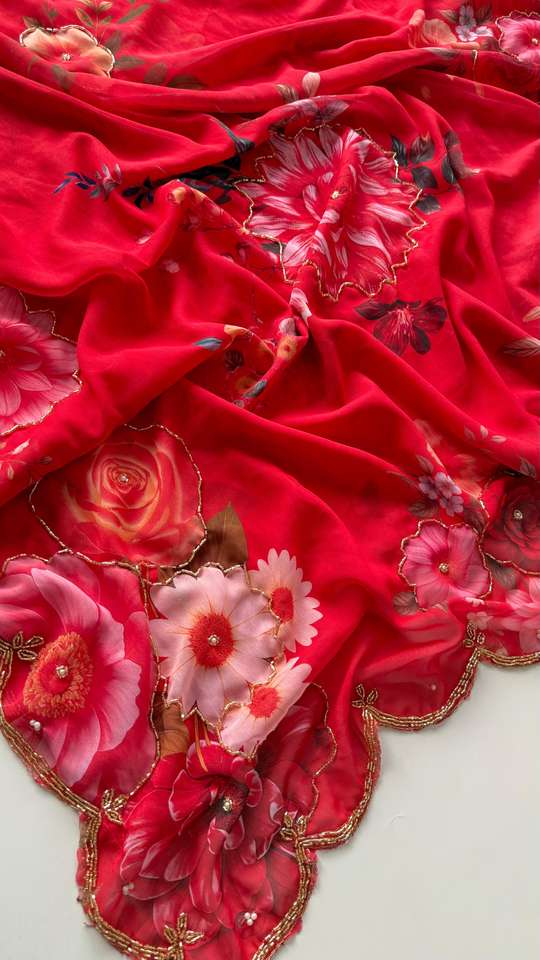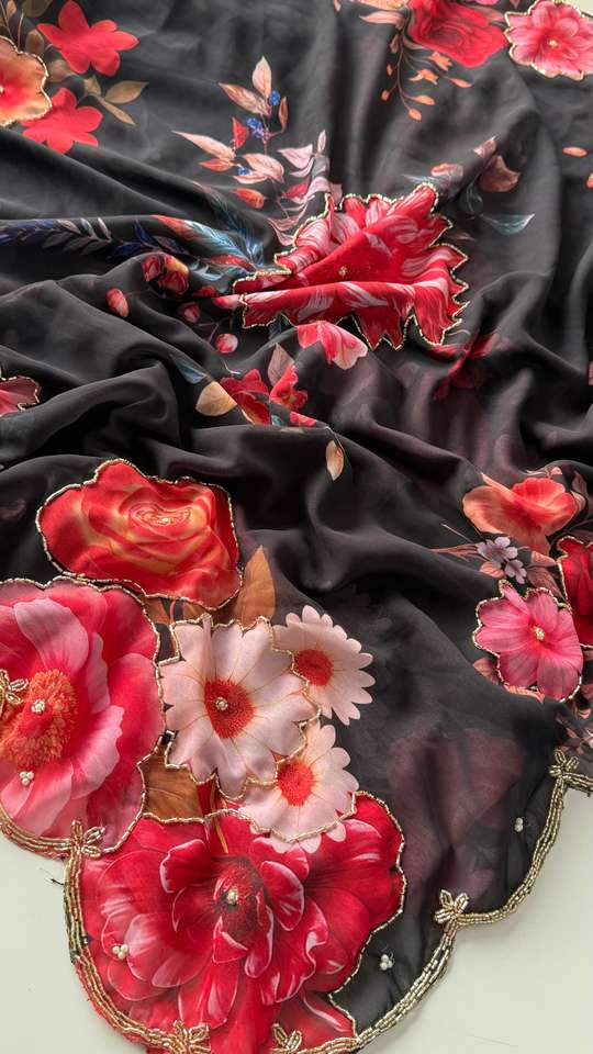 ผ้าซารีดีไซเนอร์เนื้อจอร์เจตต์ งานปักมือ น้ำหนักเบา สำหรับผู้หญิง มีสินค้าในสต็อก ผลิตในอินเดีย