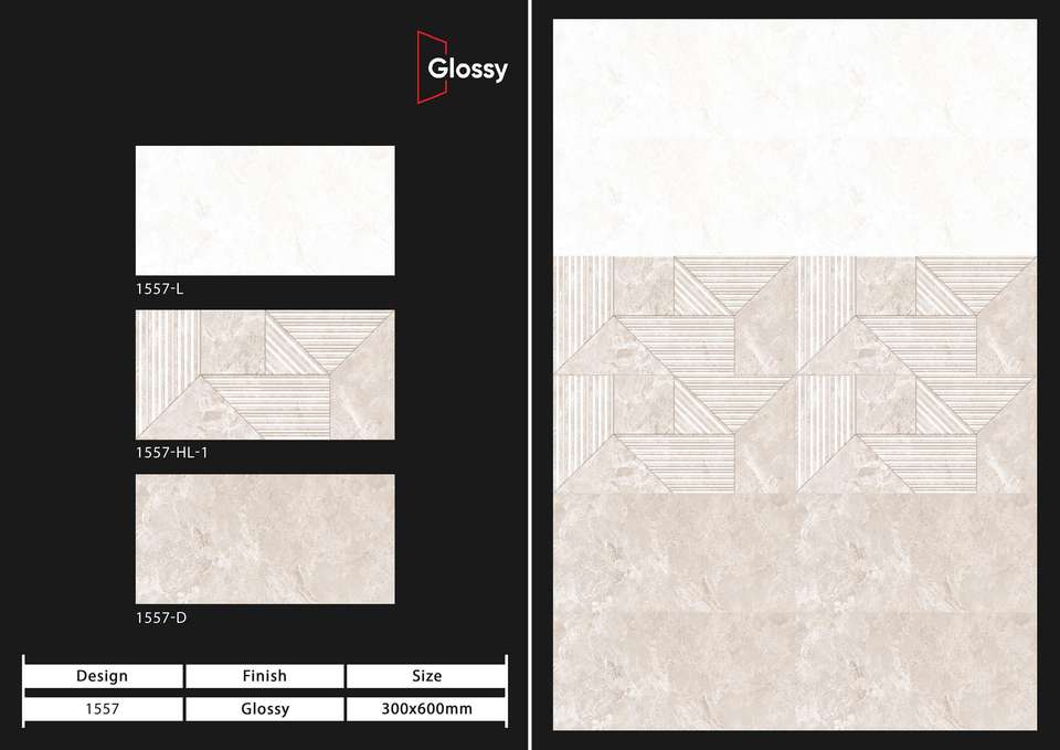กระเบื้องพอร์ซเลนเคลือบเงา ดีไซน์เนอร์ ขนาด 30x60 ซม. พัฒนาขึ้นเพื่อเพิ่มความสว่างภายใน พร้อมมอบประสิทธิภาพที่แข็งแกร่งในชีวิตประจำวัน