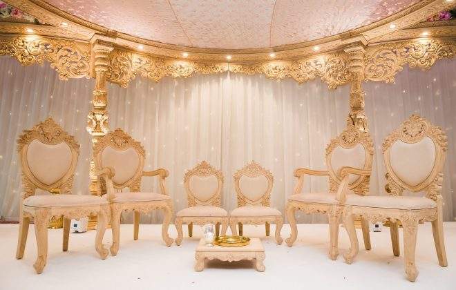 ชุดเก้าอี้แมนเด็ปทำจากไม้ตกแต่งสีทองดีไซน์เนอร์สำหรับงานแต่งงานเก้าอี้แมนแท็ป