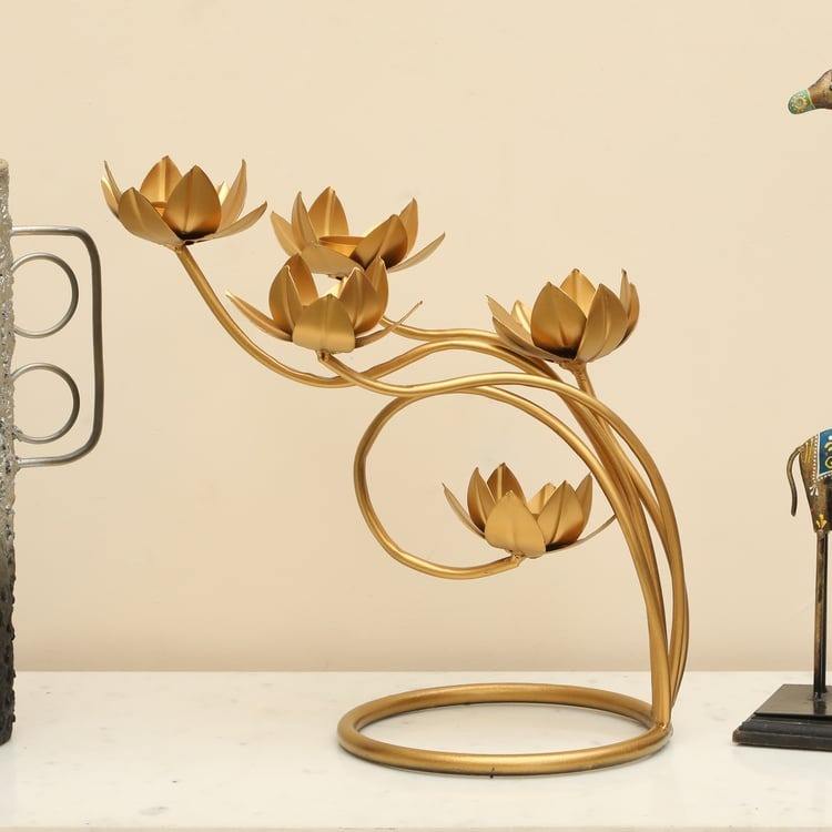 ที่ใส่เทียนทีไลท์สีทองรูปดอกบัวสำหรับตกแต่งห้องนั่งเล่นหรือตกแต่งเทศกาลดิวาลีจากอินเดีย