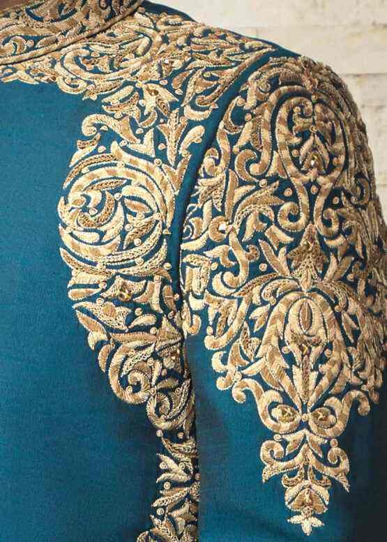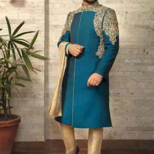 ชุดเชอร์วานีสำหรับเจ้าบ่าว ดีไซน์เนอร์ออกแบบ ชุดลำลองสำหรับงานแต่งงาน สไตล์อินเดีย-ปากีสถาน ปักลายหนัก ชุดดุลฮะ ชุดพื้นเมือง ไม่ยับง่าย