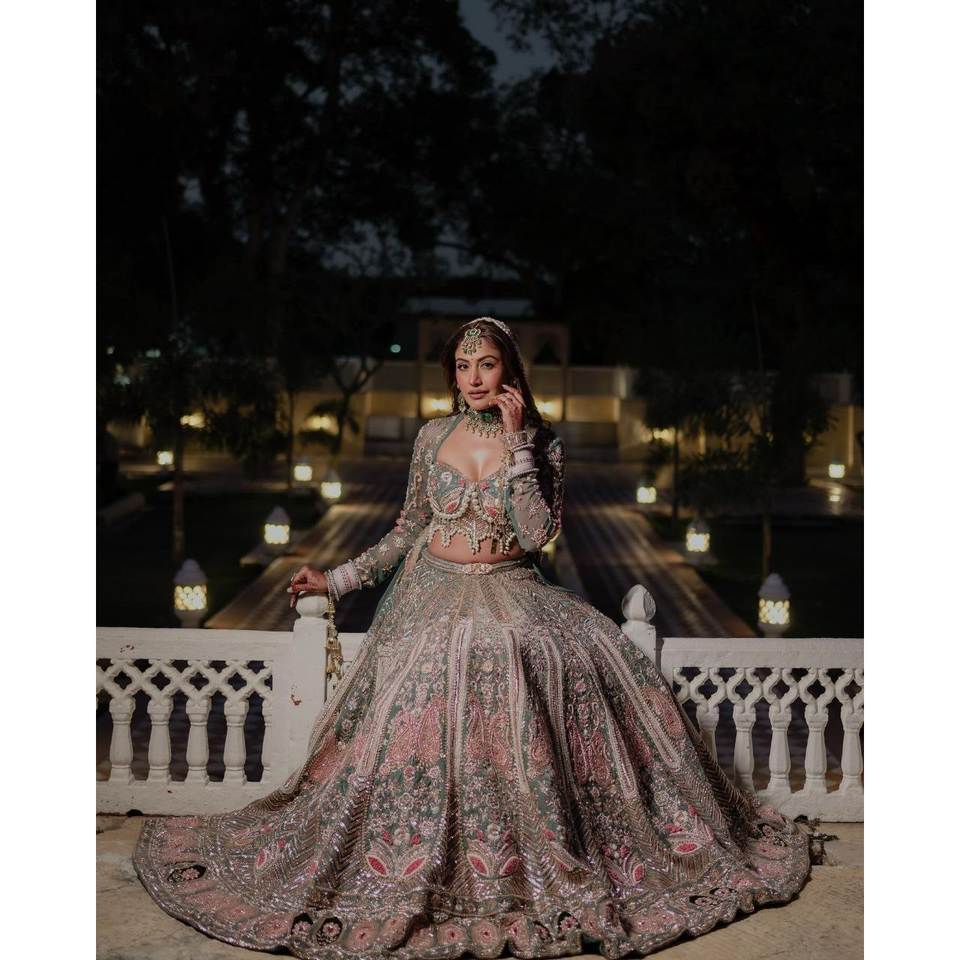 ชุดเลเฮนกาโชลีงานปักมุกดีไซน์เนอร์ สำหรับเสื้อผ้าอินเดียและปากีสถาน