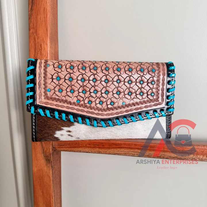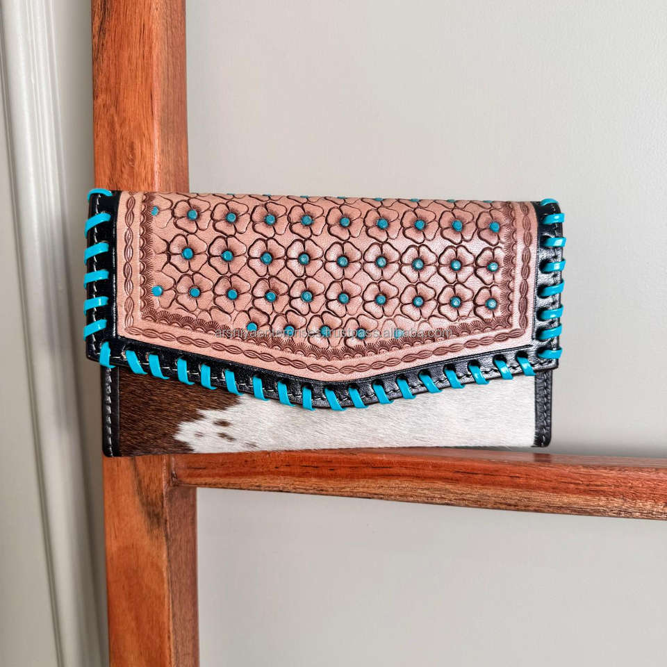 กระเป๋าคลัทช์แกะสลักมือดีไซน์เนอร์กระเป๋าคลัทช์หนังวัวแท้ทันสมัยกระเป๋าสตางค์หนังตะวันตกอเนกประสงค์