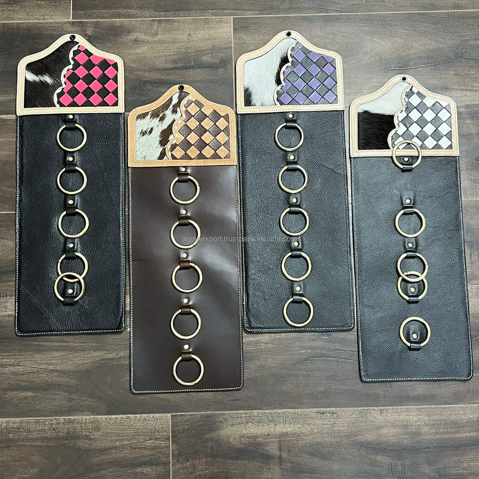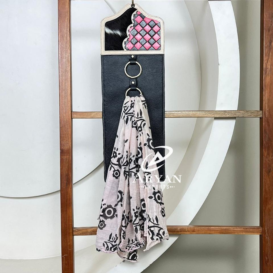 ที่แขวนผ้าพันคอหนังวัวแท้ลายตารางหมากรุกสีชมพู งานแฮนด์เมด สำหรับแขวนผนัง ใช้จัดเก็บผ้าพันคอและเครื่องประดับ