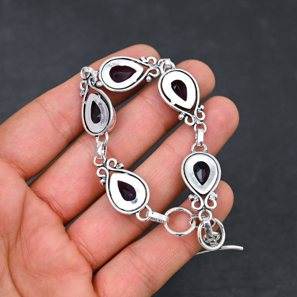 สร้อยข้อมือโซ่ชุบเงิน925แฮนด์เมดดีไซน์เนอร์สร้อยข้อมือพลอยสีม่วงสีม่วงอเมทิสต์ของขวัญสำหรับผู้หญิง